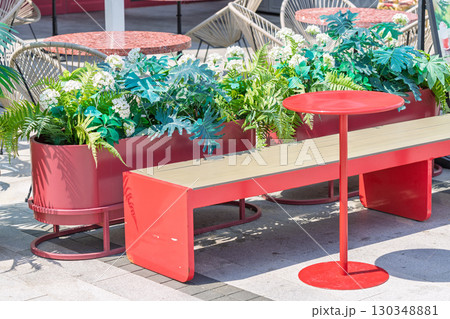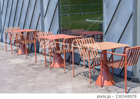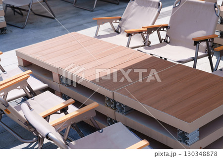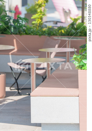 陽光下簡約風格的戶外咖啡桌