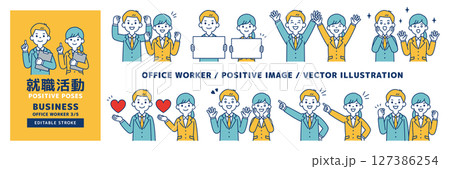 向量插圖集的男性和女性以各種姿勢尋找工作_Line editable_Color_3/5