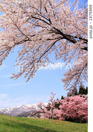 信州白馬村的櫻花盛開,北阿爾卑斯山為背景