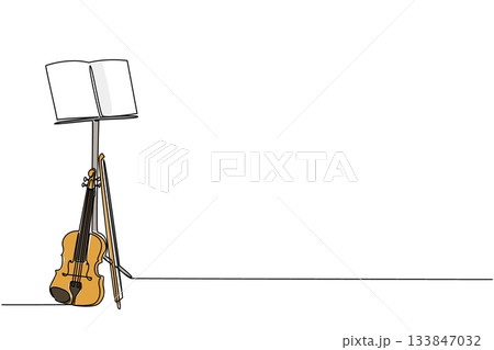 Single continuous line drawing violin with its strings leaning against the note stand. The violinist put down the instrument to rest. Composer. World Fiddle Day. One line design vector illustration