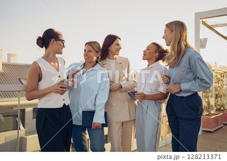 A group of women actively engaging in an enriching conversation while on a rooftop setting