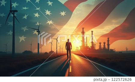 Bright poster. Runner climbing golden stairs toward red victory flag with determination
