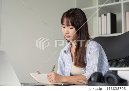 Happy and excited young beautiful Asian woman office worker celebrating her resignation, carrying her personal stuff. leaving job, changing or company.in office