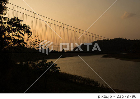 Silhouette rope bridge in the evening
