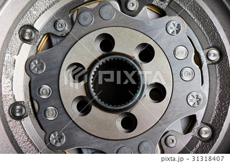 Close-up scene of transmission gear spare parts in the light blue scene.