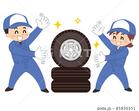 汽車修理工男女和輪胎