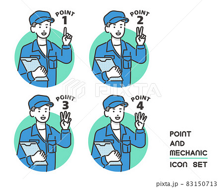 年輕男性機械師臉部表情與手勢插畫素材集