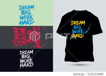 Dream Big, Work Hard slogan with Japanese calligraphy typography motivational quotes t-shirt design