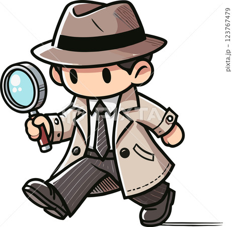 一個打扮成偵探的女孩用放大鏡追蹤腳印