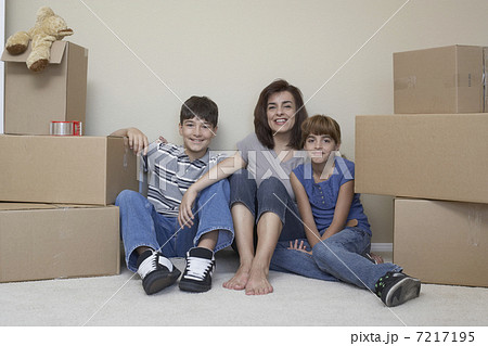 Upset Woman on Floor Next to Boxes and Blank Sign