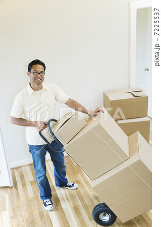 Moving Boxes in Empty Room with Copy Space on Wall