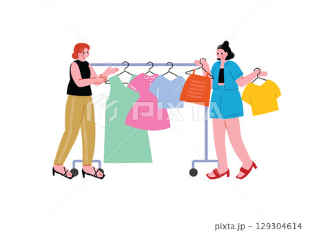 一名婦女和一名店員在服飾店買衣服