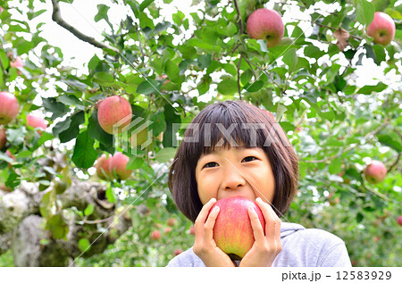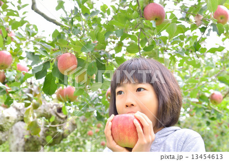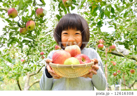 茨城縣大子町採蘋果:一位婦女的手在採蘋果