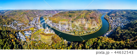 Aerial panorama of Cochem with the Reichsburg Castle and the Moselle river. Germany