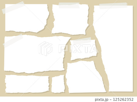 一套帶有膠帶和陰影的米色撕紙