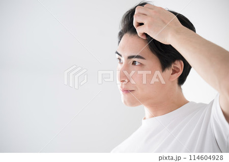 也在主視覺中!男人撫摸髮線特寫照鏡子男人的美與美