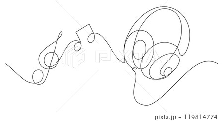 Music player interface in doodle style with buttoms, loading bar, sound wave sign and frame for album photo. Hand drawn audio player template. Vector graphic illustration