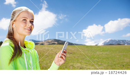 woman with smartphone listening to music