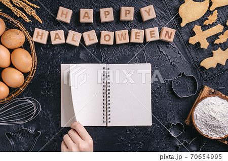 女人做年糕乾食品得分Manseibushi做餅乾食譜萬聖節餅乾製作