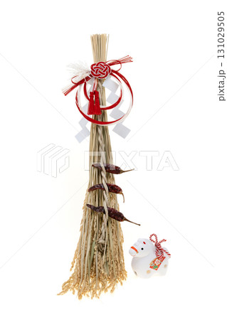 馬年賀年素材:可愛的白馬和避邪的辣椒掛飾