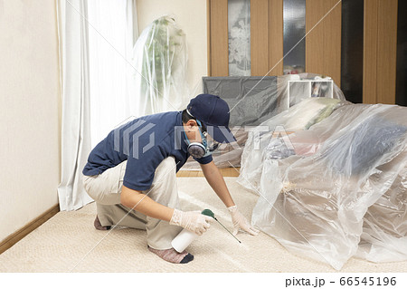 害蟲防治人員在室內噴灑農藥