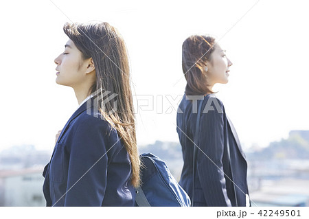 一個男人和一個女人背對背站著用智慧型手機聊天
