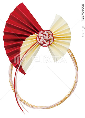 紅色和白色的水引扇新年裝飾品(白色背景)
