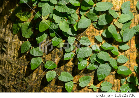藤蔓上的兩片葉子靜靜地依偎在一起。藤蔓上的一對靜謐伴侶