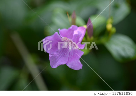 房子周圍鮮花盛開,四個季節的各種顏色,紫色的光彩,丸葉牽牛花在花園的樹蔭下閃閃發光