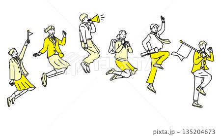 用擴音器歡呼的商務人士的簡單矢量圖解素材