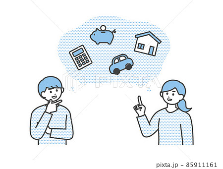 年輕男女正在思考未來金錢的插圖素材