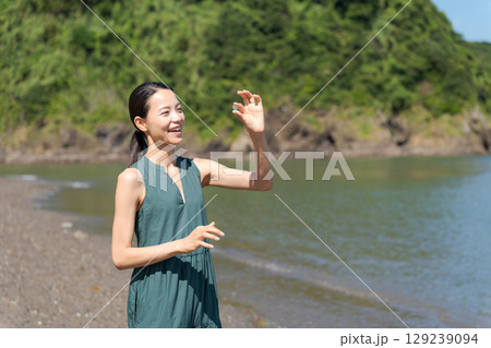 海灘上拿著貝殼的女子(神奈川縣湯濱市)