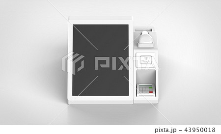 POS 收銀機/自助收銀機和堆疊硬幣的等軸圖