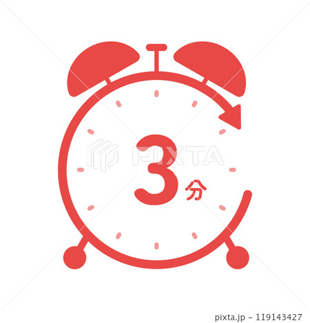 帶有3分鐘文字和鈴聲的簡單桌鐘圖示-剩餘時間或3分鐘計時器的圖像素材