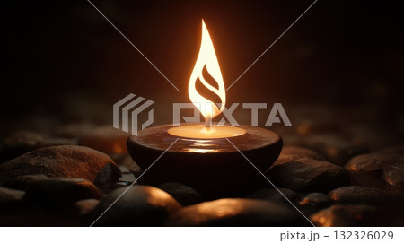 Soft Flame of Candlelight Glowing on Smooth Stones in a Dark Serenity Setting