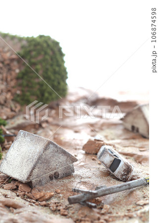 受洪水、水害、淹沒、暴雨、暴雨、颱風、天災影響地區的風景