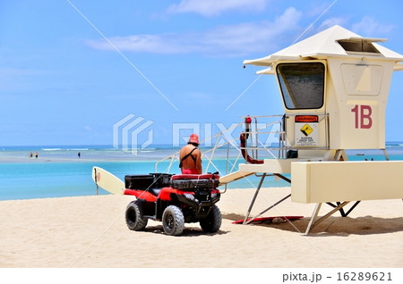 Dubai, United Arab Emirates - September 24, 2024 A small medical ambulance on the beach of JBR. Editorial