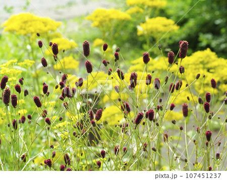 秋季植物、大名根、地榆和迷迭香的水彩插圖