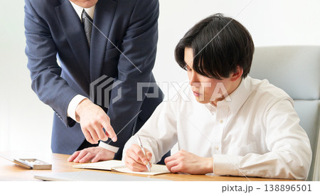 一位年輕男子正在接受老師的一對一指導。
