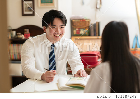 學習對家庭教師的小學女孩