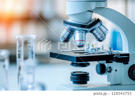 Scientific Microscope 3D illustration Background for advertising and wallpaper in medical and science scene. 3D rendering in decorative concept.