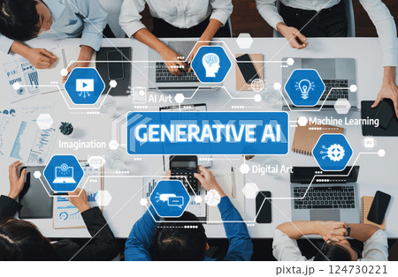 Collaborative Workspace Showcasing Generative AI Technology and Digital Art with People Engaged in Creative Processes and Machine Learning. Amity