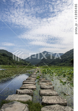 踏步橋,蓮花,Sanglim公園,Hamyang-gun,Gyeongnam