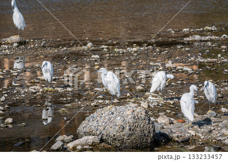 鴨江上的一群白鷺鷥(小白鷺)。