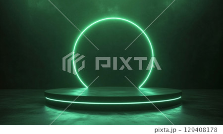 Circle green neon light technology podium stage presentation in room modern technology