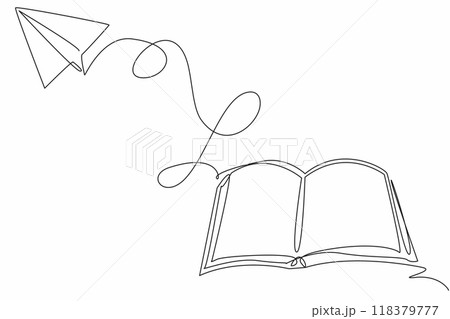 Single continuous line drawing an open book with a paper airplane flying above. Mathematics is the basic science of education. International Day of Mathematics. One line design vector illustration