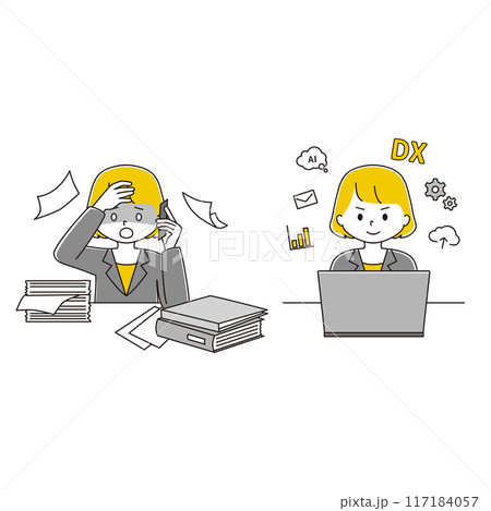 一位女性透過將模擬工作轉換為 DX 來提高工作效率的插圖集
