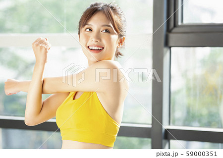 關心腰部的苗條亞洲女性(飲食/減肥形象)