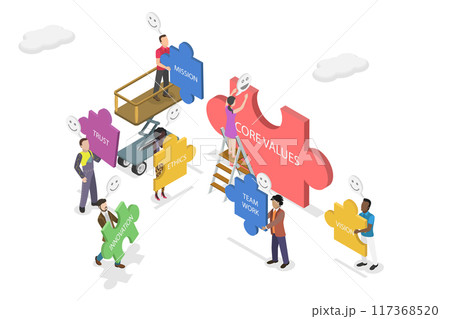 3D Isometric Flat Illustration of Core Values, Basic Social and Business Principles