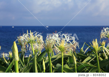 在Kemigawa海灘的海岸即將綻放白色花朵的hamayu股票
